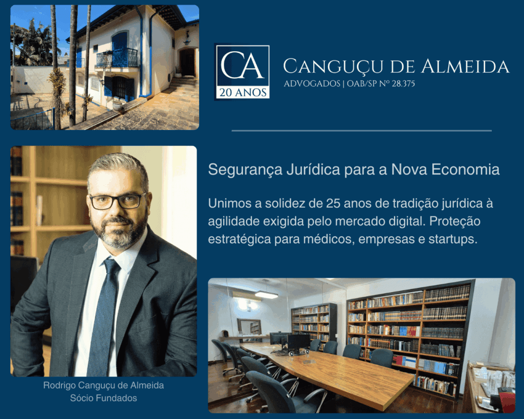 Fundado em Campinas (SP), o Canguçu de Almeida Advogados nasceu com uma proposta clara: integrar a solidez de mais de duas décadas de prática jurídica à agilidade exigida pela Nova Economia.